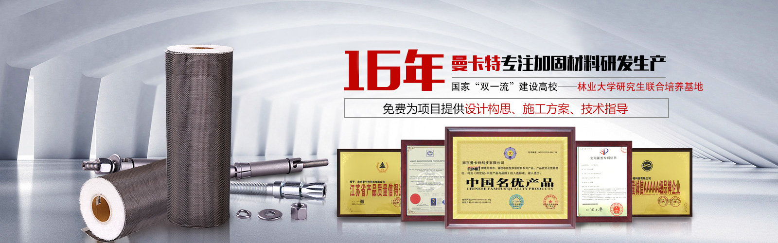 歡迎您來到南京曼卡特科技有限公司,曼卡特主產碳纖維布,植筋膠,預埋槽道,后擴底機械錨栓,定型化學錨栓等加固材料